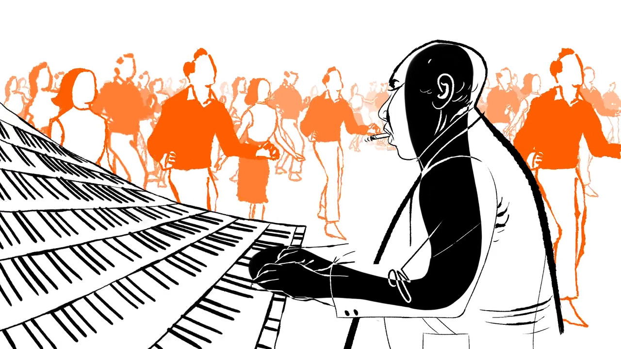 In a dark apartment, a raspy voice recounts the tormented lives of jazz musicians, lost between their dreams of the stage and their destructive excesses. A saxophonist appears, haunted by his art, clutching his instrument like a last refuge. In a desperate dance, he gives in to the call of the heroine, searching for a moment of respite.
